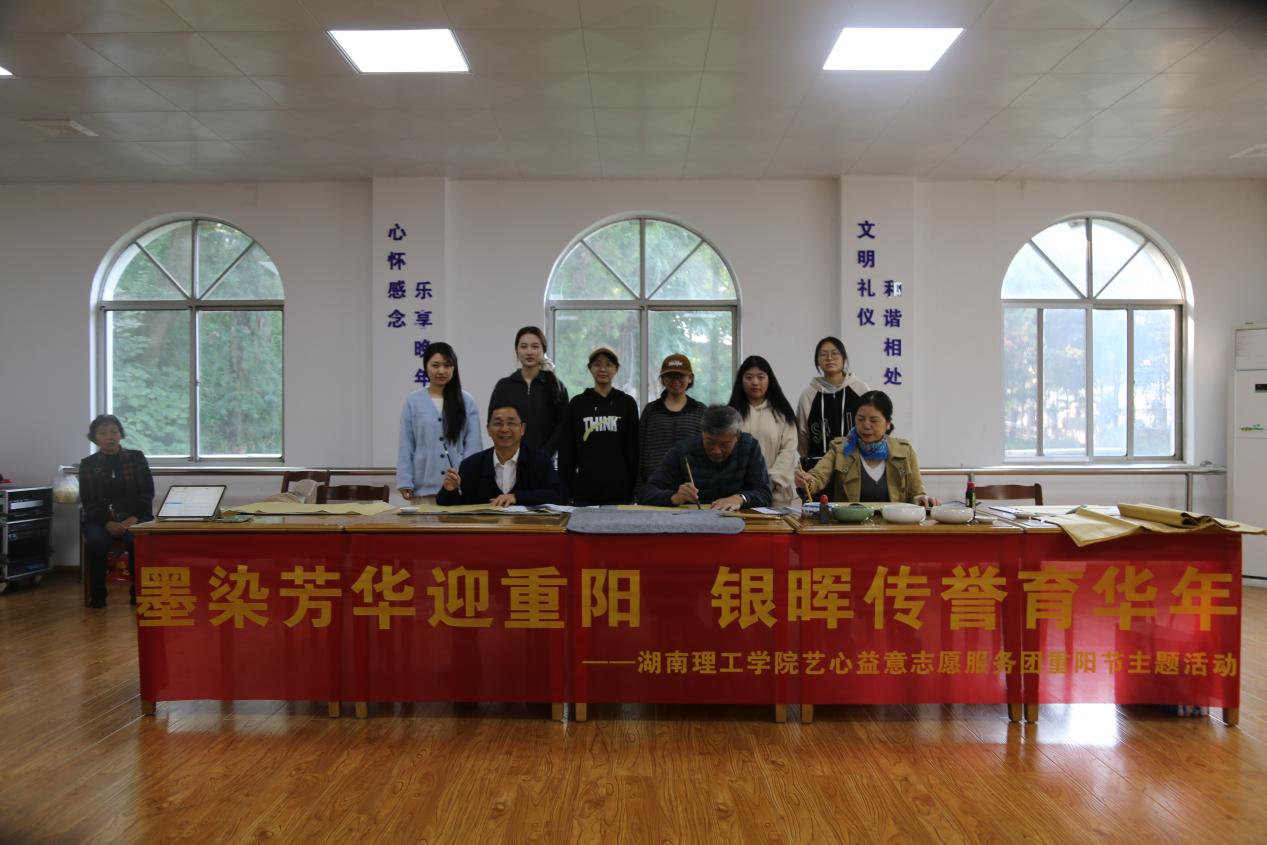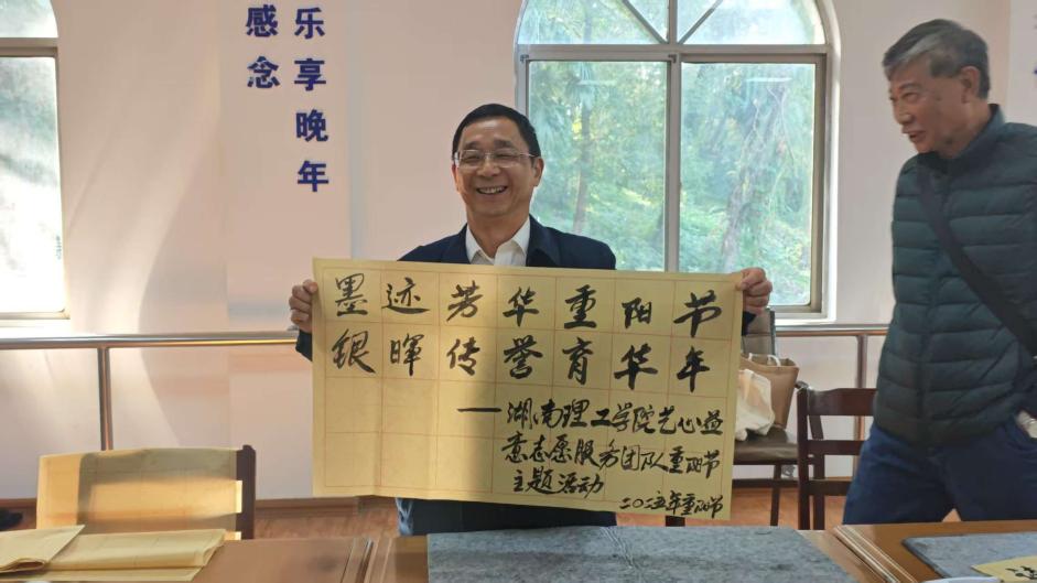 岁岁重阳暖,今朝意更浓,在重阳节来临之际,湖南理工学院美术与设计学院“艺心益意”团队的志愿者们与学校离退休老教师齐聚一堂,在学校老年活动中心以笔墨为媒介,开展“艺心润桑榆,墨香暖重阳”主题志愿服务活动,为退休老教师们送上了一份温馨的节日祝福。