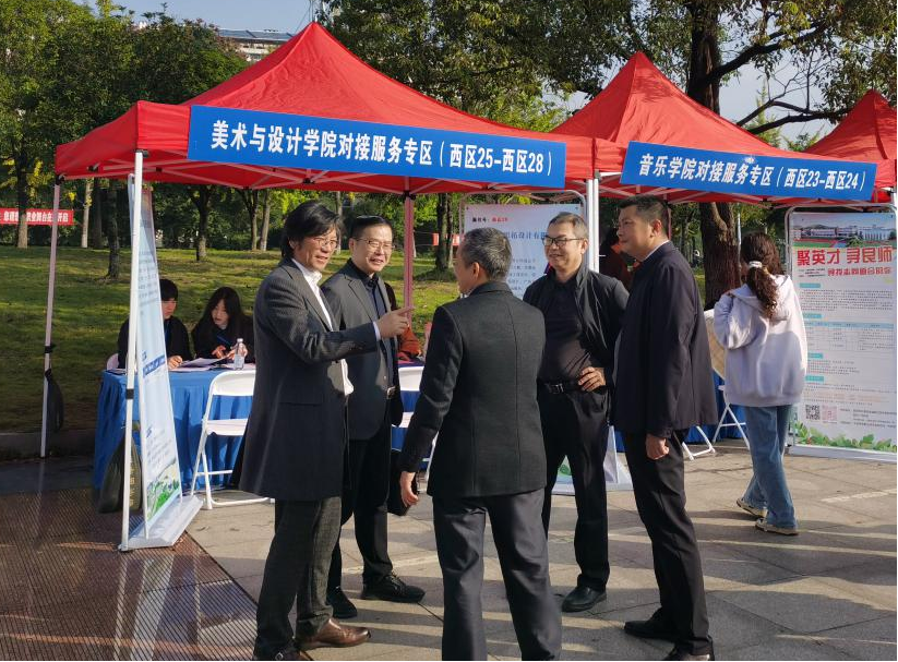 为深入贯彻落实就业工作“一把手”工程,全力促进2026届毕业生更加充分、更高质量就业,10月22日上午,美术与设计学院院长万长林、党委书记蒋晓城、副书记齐亮菲亲临2026届毕业生供需见面会现场,调研指导学院毕业生就业工作。