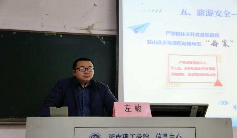 为切实提升2025级新生的安全防范意识与自我保护能力,共同营造安全、稳定、和谐的校园环境,12月8日晚,美术与设计学院组织2025级本全体新生在2T2教室参加大学生安全教育讲座,湖南理工学院保卫处副处长左峻老师主讲。