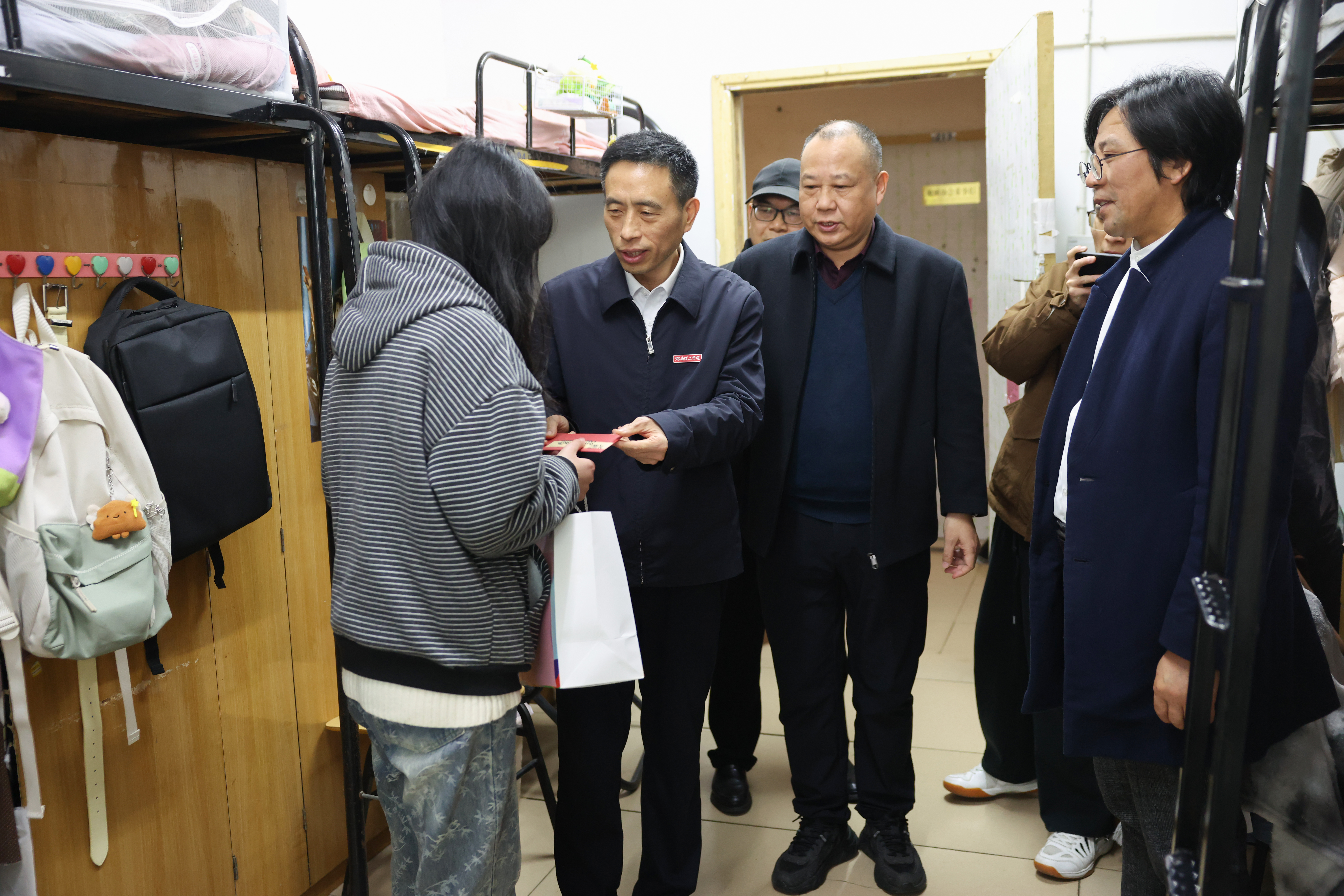走访期间,张国云一行深入学生宿舍,与同学们亲切交谈,详细询问大家的复习进度、生活近况及假期规划。针对同学们在学业提升、职业发展等方面的困惑,一行领导耐心倾听、细致解答,鼓励同学们主动加强与老师的沟通交流,积极投身校园文化活动与各类专业实践项目,在团队互动中拓宽视野、锤炼综合素养。同时叮嘱同学们重视身心健康,养成规律作息习惯,若遇困难及时向学校和老师求助,并强调学校永远是大家成长路上的坚强后盾。