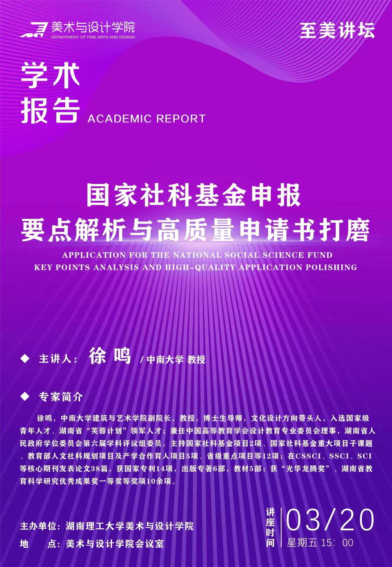 徐鸣,中南大学建筑与艺术学院教授、博士生导师、副院长,三级教授,文化设计方向带头人。主要社会兼职包括湖南省设计家协会委员、湖南省青年社科委委员,研究方向涵盖设计伦理学、非遗文创设计、艺术哲学等领域。入选“芙蓉计划”湖南文化领军人才、中宣部首批国家青年文化英才。
